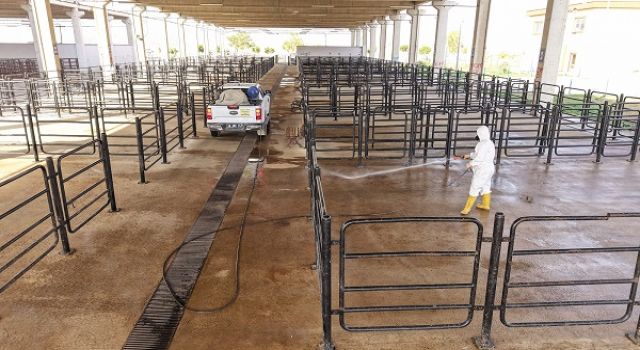Büyükşehir Belediyesi, Canlı Hayvan Pazarı’nda görülebilecek bulaşıcı hastalıkların önlenmesi için yoğun bir ilaçlama ve dezenfeksiyon uygulaması gerçekleştirdi.