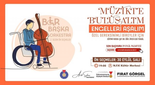 Sosyal belediyecilik anlayışıyla toplumun tüm kesimlerine hitap eden çalışmalarına hız kesmeden devam eden Kahramanmaraş Büyükşehir Belediyesi, özel gereksinimli vatandaşları da her alanda desteklemeyi sürdürüyor. Bu kapsamda hayata geçirilen “Bir Başka Orkestra”, sanatın birleştirici gücüyle özel gereksinimli bireylerin yeteneklerini ortaya çıkarma fırsatı sunuyor. Kahramanmaraş Sütçü İmam Üniversitesi ve Açık Sahne Sanat Akademisi iş birliğiyle kurulan orkestra, yeni dönem için yeni sesler arıyor. Hayatın her alanında azim ve kararlılıkla engelleri aşan özel gereksinimli bireyler, bu projeyle birlikte müzik sahnesinde kendilerini ifade etme imkânı bulacak. Başvurular çevrimiçi olarak 29 Eylül Pazartesi gününe kadar https://kahramanmaras.bel.tr/duyuru/2025/09/22/bir-baska-orkestra-basvuru-formu internet adresinden yapılabilecek.