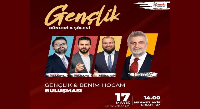 Etkinliklerin ilk günü olan 17 Mayıs Cumartesi, Mehmet Akif Ersoy Kültür Merkezi’nde “Gençlik ve Benim Hocam Buluşması” düzenlenecek. Saat 14.00’da başlayacak programda; Büyükşehir Belediye Başkanı Fırat Görgel, gazeteci Adem Metan ve eğitim platformu “Benim Hocam”ın sevilen eğitmenleri Bayram Meral ile Ramazan Yetgin, gençlerle bir araya gelerek ilham veren konuşmalar yapacak.