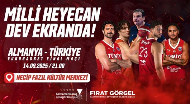 Letonya’da düzenlenen EuroBasket 2025'te tarih yazarak 24 yıl sonra finale yükselen A Milli Erkek Basketbol Takımı, yarın saat 21.00’da Almanya ile Avrupa Şampiyonluğu için karşı karşıya gelecek. A Milli Takımı’nın final maçındaki kritik karşılaşma dev ekranda canlı yayınlayacak. Büyükşehir Belediyesi, Necip Fazıl Kısakürek Kültür Merkezi önünde kuracağı dev ekran ile Millilerin tarihi maçını canlı şekilde vatandaşlarla buluşturacak. Tüm sporseverler, Türk basketbolu adına tarihi gün anlamı taşıyan ve Pazar günü saat 21.00’da başlayacak basketbol müsabakasını dev ekrandan takip etmeye ve milli heyecana hep birlikte olmaya davet edildi.
