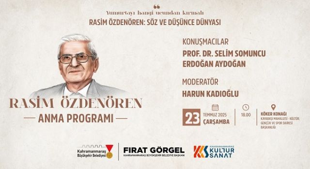 Kahramanmaraş Büyükşehir Belediyesi, şehrin zengin kültür ve sanat hayatına katkı sunmaya devam ediyor. Bu kapsamda, Yedi Güzel Adam’dan usta yazar Rasim Özdenören, vefatının üçüncü yılında özel bir program ile anılacak. Dulkadiroğlu Kayabaşı Mahallesi’nde bulunan Köker Konağı’nda gerçekleştirilecek olan anma programı, 23 Temmuz Çarşamba günü saat 18.00’da başlayacak. Harun Kadıoğlu’nun moderatörlüğünde gerçekleştirilecek anma programında KSÜ öğretim üyesi Prof. Dr. Selim Somuncu ve yazar Erdoğan Aydoğan, Türk Edebiyatı’nın dev ismi Rasim Özdenören’in edebi kişiliğini anlatacak. Büyükşehir Belediyesi tarafından yapılan açıklamada, Türk Edebiyatı’nın köşe taşlarından Rasim Özdenören’i anma programına tüm vatandaşların davetli olduğu belirtildi.