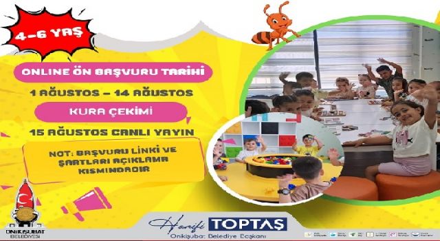 Yeni eğitim dönemi için 4-6 yaş aralığındaki çocukların katılım sağlayabileceği Şehit Hakan Akdere Gündüz Bakımevi’ne başvurular 1 - 14 Ağustos 2025 tarihleri arasında alınacak. Aileler, başvurularını Onikişubat Belediyesi’nin resmi internet sitesinde yer alan duyuru ilanındaki formu doldurarak online olarak gerçekleştirebilecek.