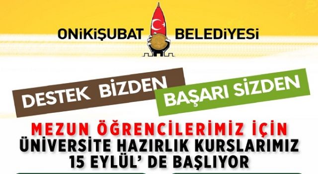 Eğitime verdiği önemi her fırsatta ortaya koyan Onikişubat Belediyesi, üniversite hayali kuran mezun öğrenciler için ücretsiz üniversite hazırlık kurslarını yeni dönemde de sürdürüyor. Geçtiğimiz yıllarda birçok öğrenciyi hayallerindeki üniversiteye taşıyan bu önemli kurs için ön başvurular 11 Ağustos – 1 Eylül tarihleri arasında alınacak, kurs ise 15 Eylül’de başlayacak.
